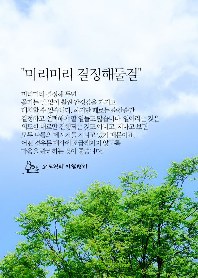 "미리미리 결정해둘걸" 지난 며칠을 돌이켜보면,